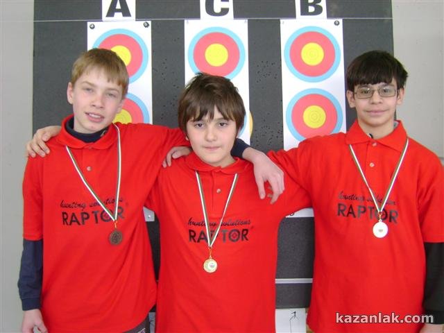 Пълен комплект медали злато, сребро и бронз извоюваха състезателите на казанлъшкия клуб по стрелба с лък „Раптор арчери”. На провелото се в зала „Арена Армеец” в София Държавно първенство за деца и младежи, казанлъчани се представиха повече от отлично. Шампионска титла при децата до 11 години спечели Алекс Сапунджиев. Сребро и бронз при децата до 14 години извоюваха съответно Валентин Бучакчиев и Адриан Стойков. В тези възрасти децата стреляха в олимпийската дисциплина рекърв със стандартен лък от дължина 12 метра по мишена с големина 80 сантиметра.