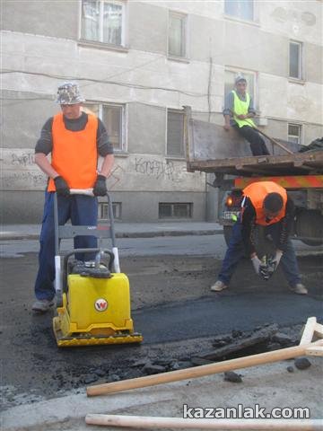 Както ви информирахме, днес Община Казанлък започна работата по запълването на дупките по улиците. Технологията включва изрязване на дупките със специална машина, което започна още в края на миналата седмица, с първото повишаване на температурите. Следващият етап включва почистване на дупките чрез обдухване с насочена струя въздух, след което се полага емулсия, след нея се насипва горещата асфалтова смес, трамбова се с машина и накрая се запечатва с емулсия.