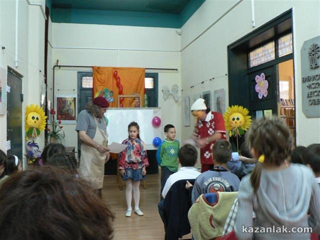 Днес бяха открити „Празници на детската книга и изкуствата за деца” в Казанлък. Дните на книгата се организират съвместно от Общинска библиотека „Искра” и Община Казанлък. Тази сутрин празниците бяха открити от Анна Кожухарова- директор на казанлъшката библиотека, като на представлението присъстваха децата от 1 г клас на Основно училище ”Георги Кирков”. Библиотеката подари на малчуганите читателска карта за 2012 година и лист с „молбата на книгата”. В своята молба книгата моли: да не я пипат с нечисти ръце, да не я оставят на дъжда и вятъра, да не драскат по нея да не я хвърлят на земята и още полезни за здравето на печатното издание неща. Децата получиха и подарък от Николина Русева, която дари на всички по една от книгите си. Най-голямо удоволствие на първокласниците доставиха актьорите Георги Ташев и Стоян Стоянов, които преоблечени като Пинокио и Татко Карло поднесоха щури забавления за всички в залата на библиотеката. Актьорите занимателно показаха на децата буквите и с много игри предизвикаха смях и оживление в групата ученици. Децата се преобразиха и като актьори участвайки импровизирано в постановки от различни приказки: „Дядо вади ряпа”, „Косе босе” и „Червената шапчица”. В празничните дни деца от първите класове на училищата „Чудомир”, „Никола Вапцаров”, „Георги Кирков”, „Паисий Хилендарски” и „Мати Болгария” ще се включат във веселията подготвени от ОБ”Искра”. В началото на април ще стартира и „Театъра на сенките”, който ще бъде представен по детските градини в Казанлък.