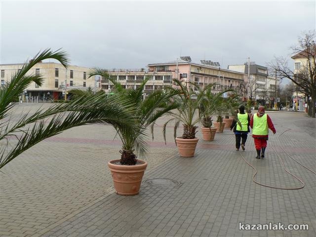 С началото на пролетта в Казанлък започна да кипи работа по озеленяването, което да придаде един красив облик на града ни. Днес на площад Севтополис бяха сложени 9 палми, които създадоха едно приятно усещане в минувачите въпреки мрачния ден.Екзотичните дървета характерни за средиземноморието отново бяха сложени на центъра и допълнително засилиха топлината от пролетта, след дългата и студена зима. От градската управа започнаха и озеленяването на градинките, като пред Общината бяха засадени няколко вида храстчета и много екземпляри от вечно зеленото растение Туя.