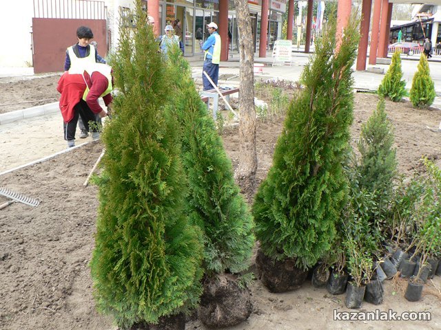 Работниците от направление озеленяване в Казанлък продължават тежката си работа. Само вчера работниците засяха над 30 корена рози в източния край на Казанлък, това сподели за сайта ни ръководителя на направление озеленяване в общината Станислав Пеев. Той се е заел с нелеката задача да превърне града на розите в приветливо място за местното население и гостите. Вчера бе оформена красива градинка югозападно от магазин Универмаг, като в нея бяха засети няколко екземпляра туя и множество корени лигуструм. В градинката бяха поставени и 4 пейки, на които хората ще могат да си почиват.