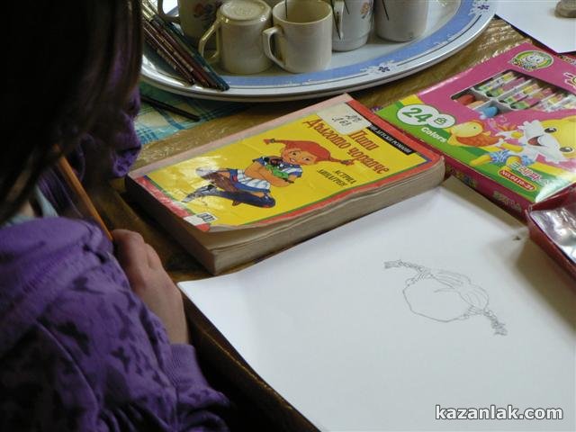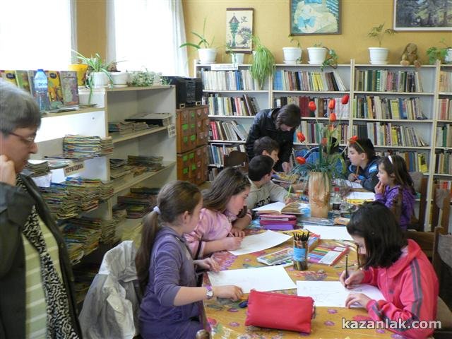 Изложба на детски рисунки бе изложена днес във фоайето на Общинска библиотека „Искра”. Рисунките са на 62 деца от региона, които в продължение на 4 дни рисуваха в детския отдел на библиотеката своите любими приказни герой. Младите художници бяха на възраст от 5 до 12 години, като всички те ще получат грамоти за участието си в пролетното ателие. В него участие взеха възпитаници на Школа „Артлиния”, Школа Ренина, НЧ”Братство-Енина” и НЧ ”Цвятко Радойнов”-Крън. Всички те рисуваха своите герои, като преобладаващи бяха образите на Пипи дългото чорапче и Мечо пух.