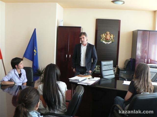 Претендентките за „Царица Роза 2012” днес посетиха сградата на Община Казанлък. Момичетата се запознаха първо с работата на кмета на общината. Лично Галина Стоянова посрещна красавиците в своя кабинет, като им обясни как минава една нейна седмица. Претендентките за короната споделиха и някои свои виждания за това как да превърнем Казанлък в по-добро за живеене място. Много от девойките изявиха желание да помогнат в различни благотворителни кампании.