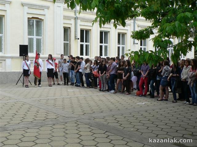 Поднесени бяха и венци и цветя пред паметника на Кирил и Методий в двора на гимназията. Веднага след тържеството в салона на кино "Искра", с празничен концерт бяха изпратени тазгодишните абитуриенти на училището. Сред тях са и 4 от участничките в конкурса „Царица Роза”. Очаквайте скоро видео от тържеството.