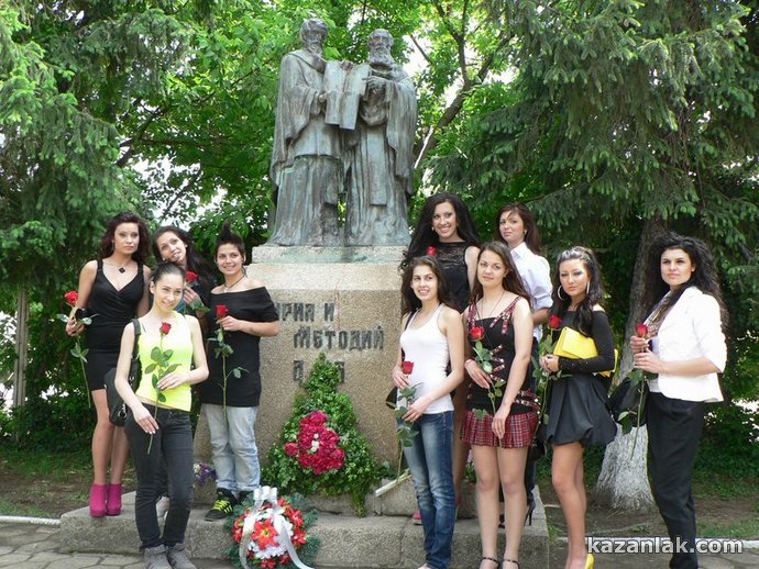 Кандидатките за „Царица Роза” днес поднесоха цветя на паметника на светите братя Кирил и Методий в двора на хуманитарната гимназия. Десетте красавици се преклониха пред делото на двамата братя създали азбуката, след което продължиха деня си с ангажименти свързани с конкурса.
