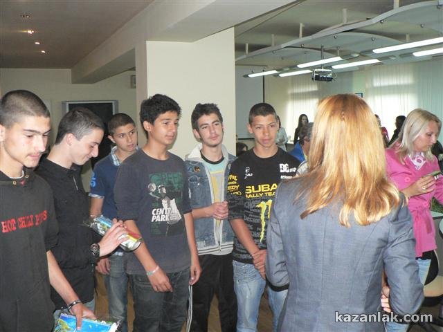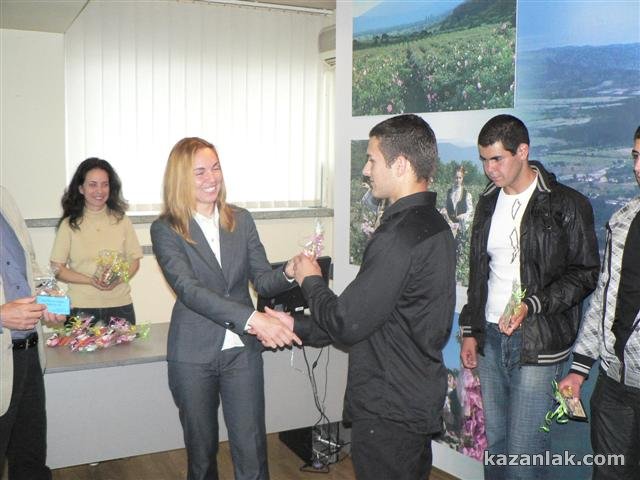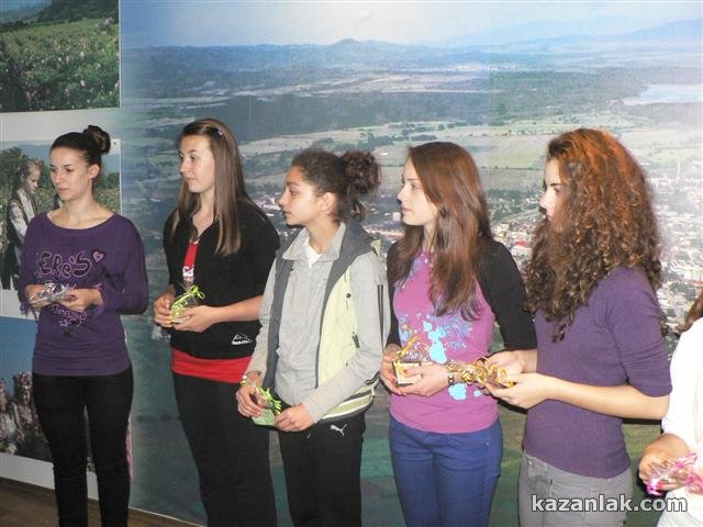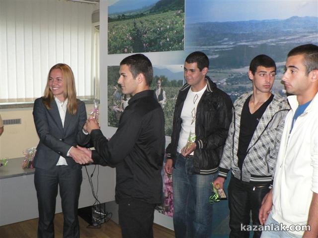Община Казанлък награди казанлъшките ученически отбори, които се класираха за финалите на страната ни в отделните видове спорт. Заместник кметът Лилия Цонкова връчи на 50 деца и техните учители скромни подаръци с което почетоха успехите постигнати през тази година. Наградени бяха девойките до 12 клас на ПМГ”Никола Обрешков”, които се завърнаха с 4-то място от Републиканското ученическо по волейбол. Друг приключил турнир бе този по лека атлетика за деца 5-7 клас, където момчетата на ОУ”Мати Болгария” завършиха 5-ти.