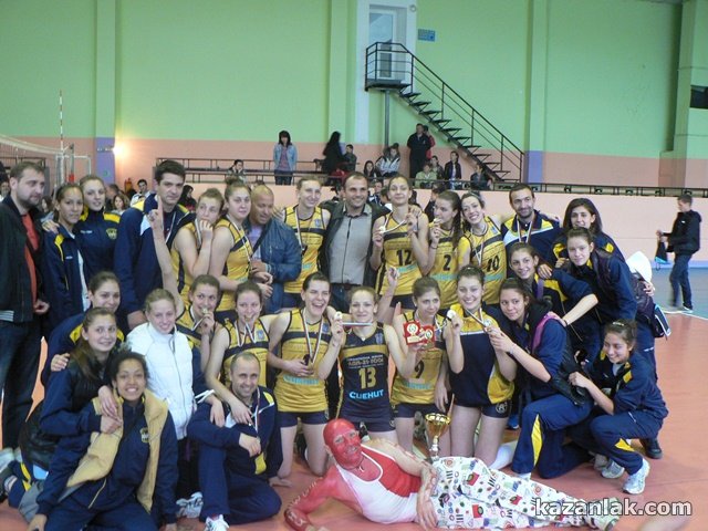 Фен боядисан в червено подкрепяше през цялото време волейболистките на „ЦСКА“ в днешния финал от Републиканското първенство за девойки старша възраст. Въпреки подкрепата на атрактивния фен и на още няколко ултра фенове на столичния тим „червените“ загубиха драматично от „Марица с 2:3. На ръцете си привърженика на "ЦСКА" бе изписал червени шампиони, но това не му попречи да се снима с отбора на "Марица", след края на двубоя. Днес зала „Арсенал“ бе изпълнена с фенове, като сред зрителите бе и кмета на Казанлък- Галина Стоянова, която проведе разговор с шефа на федерацията по волейбол Данчо Лазаров. Във финала „Марица“ спечели първия гейм, след което следващите 2 бяха за столичанки. В четвъртия пловдивчанки изравниха и се стигна до тайбрек спечелен отново от момичетата от града на тепетата с 15:11. След срещата емоциите завладяха спортната зала на Казанлък, като докато пловдивчанки се къпеха с шампанско, то девойките на „ЦСКА“ плачеха за загубената титла. Определени бяха и най-добрите по постове, като състезателки на „Марица“ спечелиха 3 индивидуални приза, един бе за състезателка на „Левски“, а наградата за най-добър състезател на турнира стана казанлъшката волейболистка на „ЦСКА“ –Веселина Григорова. Утре очаквайте и интервю с председателя на волейболната федерация Данчо Лазаров.