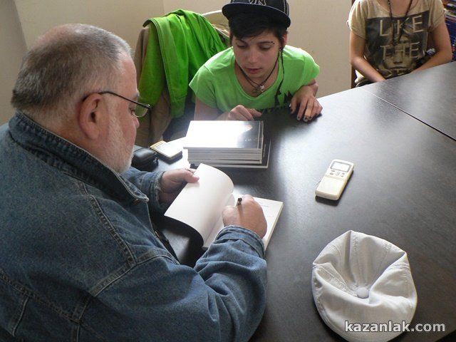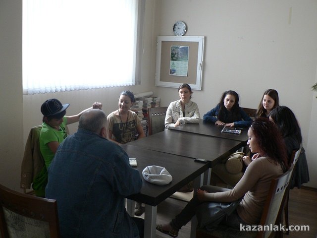 Среща с писателя и белетрист от Казанлък Веселин Стоянов беляза седмицата преди деня на славянската писменост и култура на десетте претендентки за короната на Царица Роза 2012.