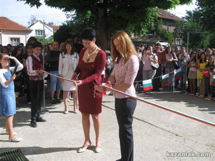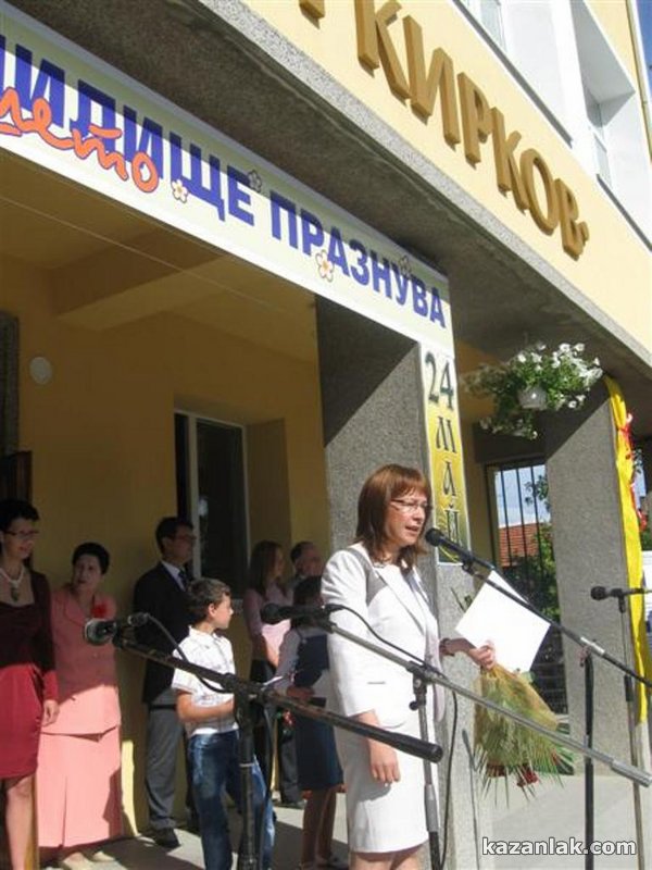 Кметът на община Казанлък Галина Стоянова, народният представител Емил Караниколов и заместник-кметът Лилия Цонкова участваха в празника на ОУ „Георги Кирков” , което заедно с поздравленията за здраве, енергия и успехи на ученици и учители, получи от кмета и разрешителното за ползване на сградата. В рамките на проект „Внедряване на мерки за енергийна ефективност в учебни заведения от гр.Казанлък”, финансиран от Европейския фонд за регионално развитие по ОП „Регионално развитие 2007-2013” и от Община Казанлък, по сградата на училището бяха изпълнени редица мерки по нейното саниране и обновяване. През месец април бе извършено топлоизолиране на външни стени, реконструкция и топлоизолиране на покрив, подмяна на стара дограма, топлоизолиране на под. Изпълнените строително – ремонтни работи са на стойност 197 007 лв.