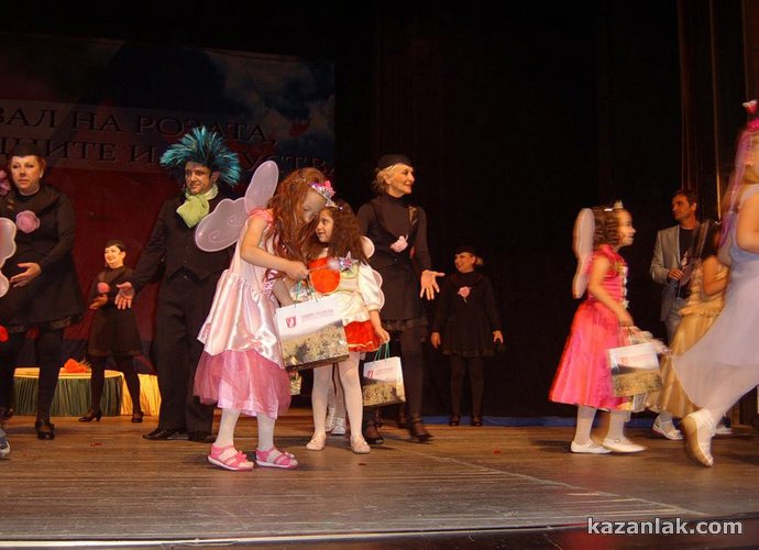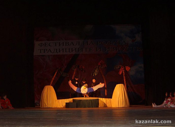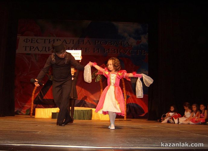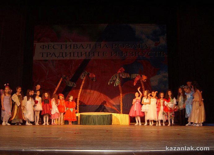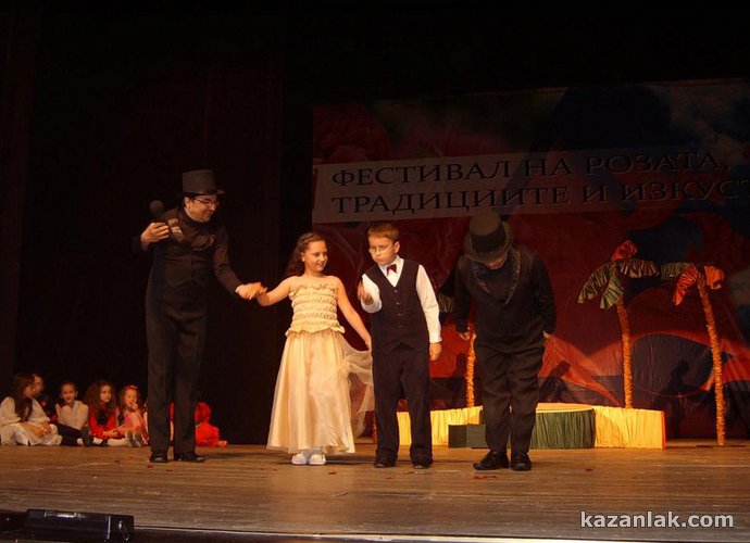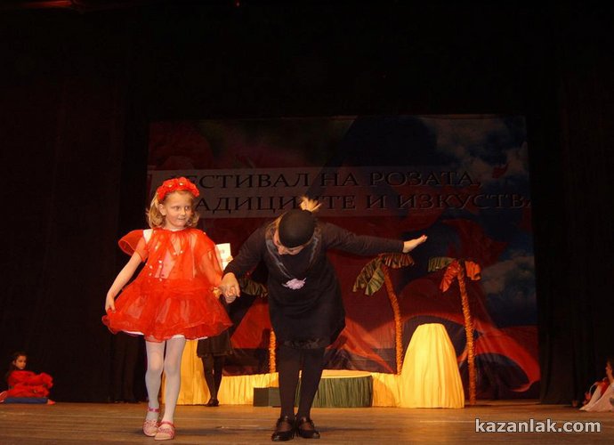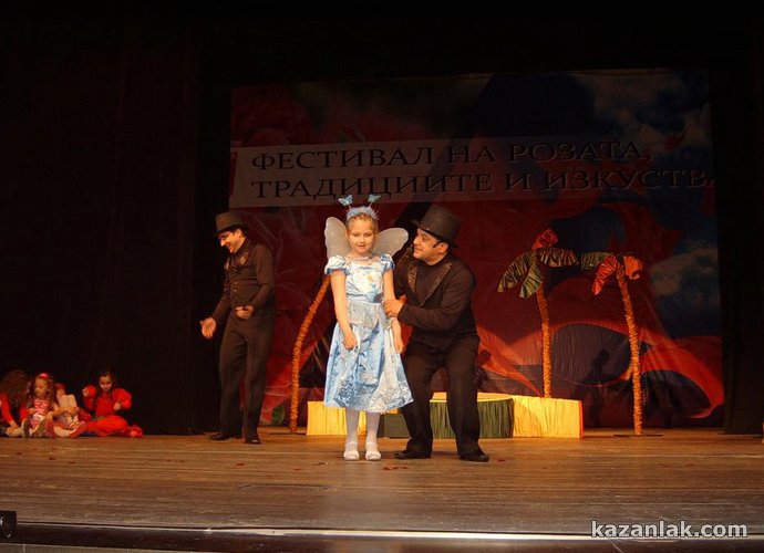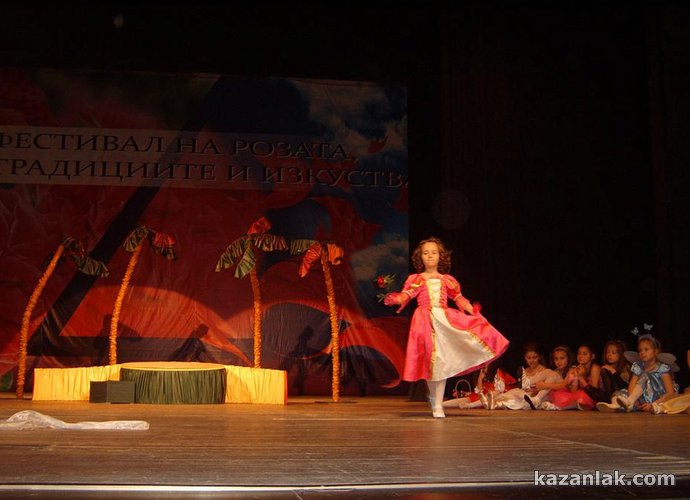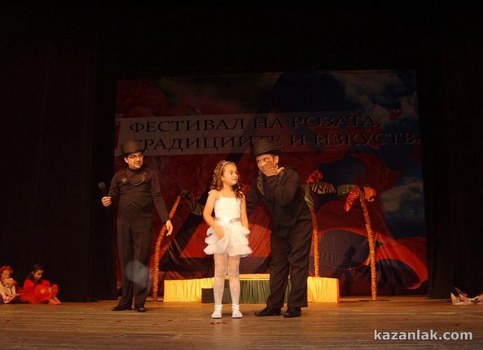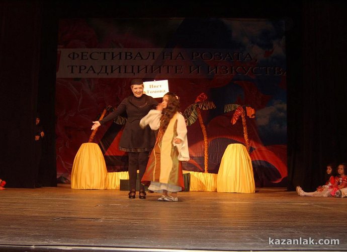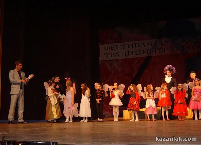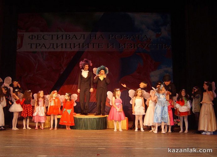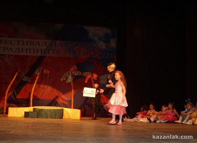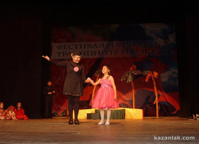 Всички участнички в Конкурса "Мини Мис Царица Роза" спечелиха тази година, журиране и оценки в конкурса нямаше. Това е конкурс за талант и красота и в него всички са победители - обяви Кметът на града Галина Стоянова, която допълни, че всички участнички в конкурса продължават да участвата в Празника на Розата 2012 като Мини Мис Царици Роза. Спектакълът, който се проведе днес преди обед в ДК "Арсенал" беше изключително вълнуващ и забавен за малките зрители и за техните родители. Конкурсът беше вплетен в прeдставлението на Държавния куклен театър-Варна "Зоовизия", като на казанлъшка сцена конкурсът беше наречен "Розовизия". Песни танци и стихотворения се редуваха да представят кандидат-мини царици с куклени герои - орелът от САЩ, Мечокът от Русия, Вълчицата от Италия, Зебрата от Африка, френският петел и магарето от БГ. Участничките в конкурса също бяха облечени в унисон с конкурса за Зоо- и Розовизия - на сцената пърхаха калинки, пеперуди, светулки, рози, принцеси на животните, хората и цветята, червена шапчица и балерини. Дечицата бяха подготвили за публиката най-доброто от своите таланти - песни, танци, стихотворения и дори актьорски етюди. В края всички станаха победителки и получиха корони, пеперудени розови крила, пръчици на феи и подaръци от спонсор на Празника - по един мобилен телефон за всяка участничка. Подаръците връчиха кметът Галина Стоянова и Николай Златанов - председател на Общинския съвет.