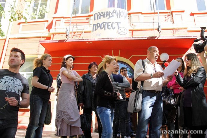 Днес, в 14 и 30 часа, наши представители бяха на среща при кмета на Казанлък Галина Стоянова, за да уточняваме организационни въпроси, свързани с гостуването на Театър „Колесо” от побратимения руски град Толияти и взаимно поехме ангажимент в празничните дни – 1, 2 и 3 юни да не организираме митинги и стачни действия. 30 минути след тази среща на председателя на Стачния комитет бе връчено разпореждане на РУ Полиция – Казанлък „да спазваме предложението на кмета и да протестираме на 1, 2 и 3 юни пред сградата, в която се помещава Театъра”?!? Същевременно бе разпространено официално съобщение, което е в пълен противовес на постигнатата договореност час по-рано!?!