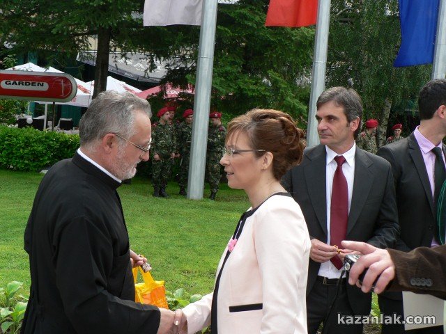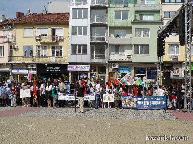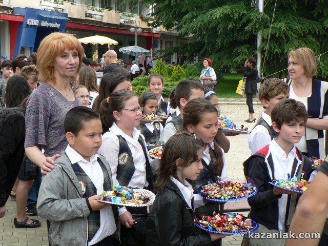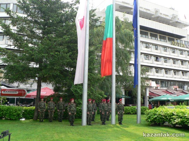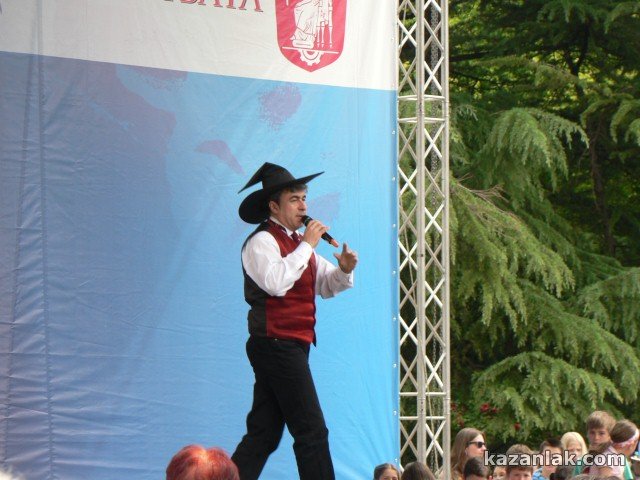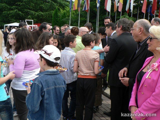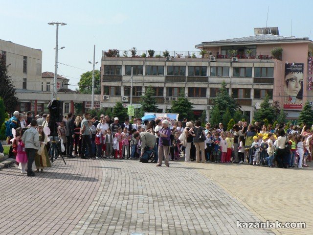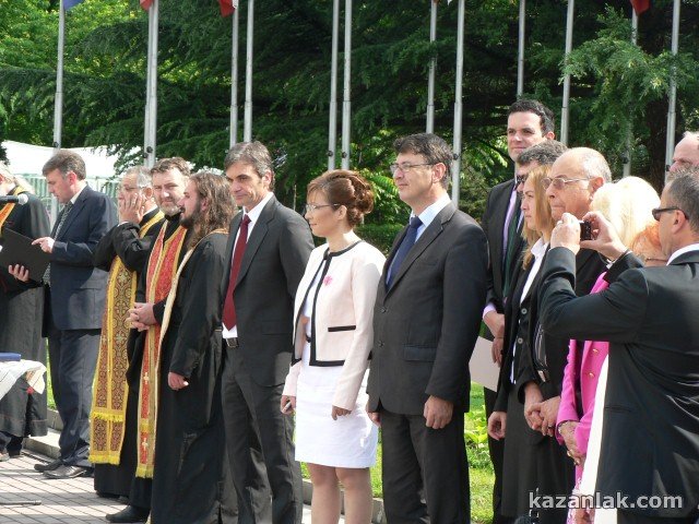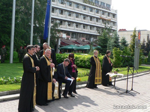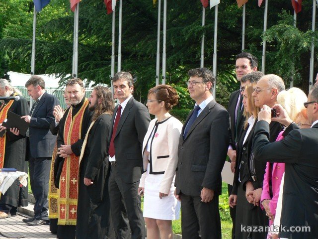 С химна на Европа и знамето на Европейския съюз започна днешният Празник на Казанлък. Деца от града поставиха на площада голямо синьо знаме, а малки балерини обикаляха по него държейки жълтите звезди символ на ЕС. Водосвет извършиха казанлъшки свещеници, а кметът на Община Казанлък Галина Стоянова приветства всички присъстващи и подчерта, че Казанлък и долината са люлка на традиции, история и култура. „Трябва да сме горди и да имаме самочувствие, че сме казанлъчани. Ние осъзнаваме, че трябва да направим това място по-добро за живеене. Трябва да предадем историята и традициите на нашите деца, защото и след нас ще го има Казанлък и ще я има Долината“- заяви в своето слово Стоянова.