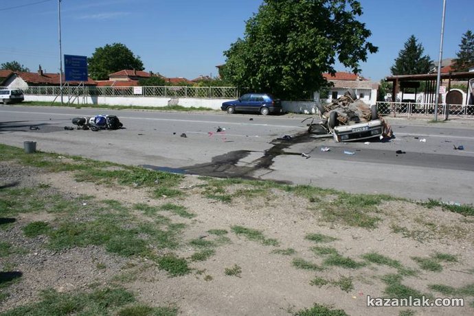 Вчера в Казанлък се разигра поредния случай на катастрофа с мотоциклет. Произшествието се е разиграло на път без асфалтова настилка на улица „Стефан Хаджиенов“. Според органите на реда катастрофата е станала в следствие на техническа неизправност на МПС и несъобразена скорост. При спускане мотоциклет Джили управляван от 63 годишния Н.З. от Казанлък се блъска в движещия се срещу него лек автомобил Фиат , управляван от 41 годишния М.Ч. също от града на розите.