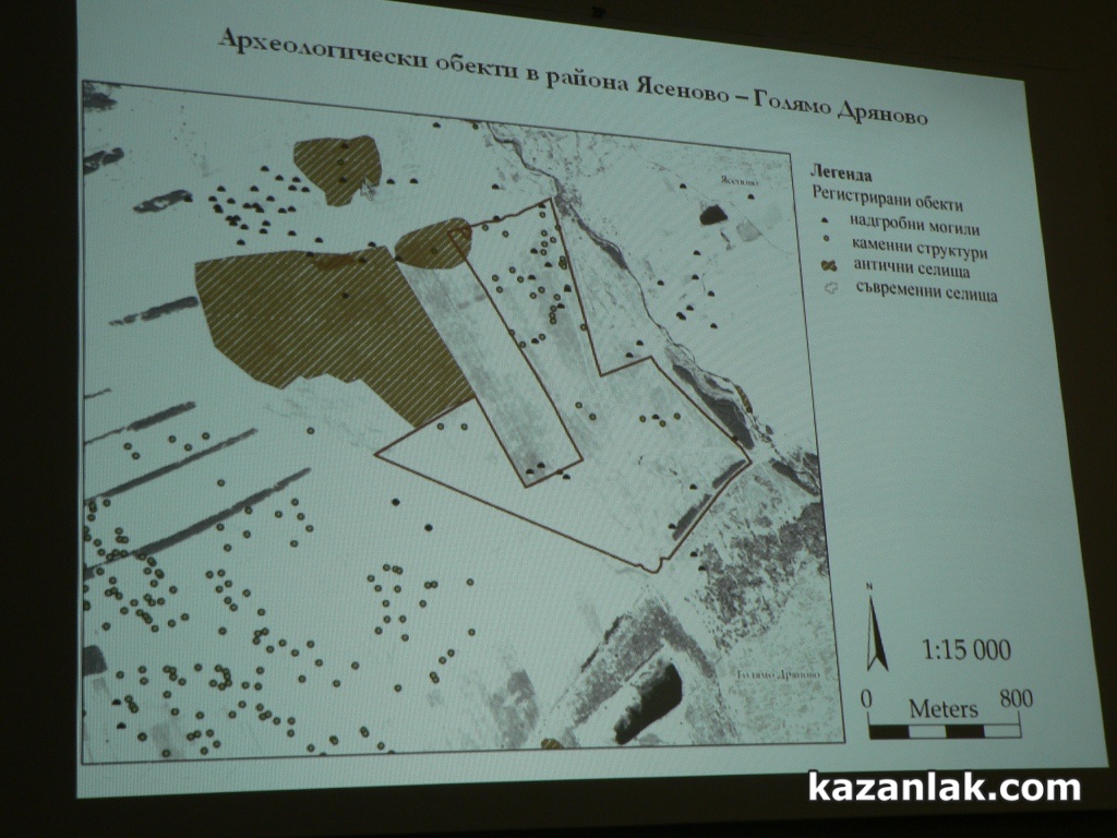 Огромен некропол от времето на разцвета на траките бе открит при проучвания между селата Ясеново и Голямо Дряново. При отбелязване на обектите с археологическа стойност на картата, в четириъгълника Ясеново-Скобелево-Горно Сахране-Голямо Дряново бяха маркирани около 350-400 обекта, които представляват интерес за археолозите. Проучването бе направено по искане на фирмата „Би Си Ай“, която ще разположи фотоволтаична централа в региона. Екип от археолози от София и казанлъшкия Исторически музей проучиха целия регион, като бяха разкопани 4 могили. При разкопките са намерени 7 човешки скелета. При едно от погребенията има добре запазен скелет с разположени предмети до него. Предполага се, че скелетът е бил на войн с висш ранг, като в ляво от него е намерено копие, а в дясно - местна амфора и чаша с две дръжки. Мъжът е бил с приблизителен ръст 180 сантиметра. Няколко от другите скелети са били с разпръснати кости, което е също част от традициите в древността. Проученият регион е бил с площ 1400 декара, като всички открития са описани с голяма точност и фирма „Би Си Ай“ може да започне строежа на парка, който е с мощност 50 Мегавата. При разкопките са открити още монета от 1876 година и монета от времето на император Комод. Датировката на скелета на войн показва, че погребението е извършено във втората половина на 4 век преди Христа.