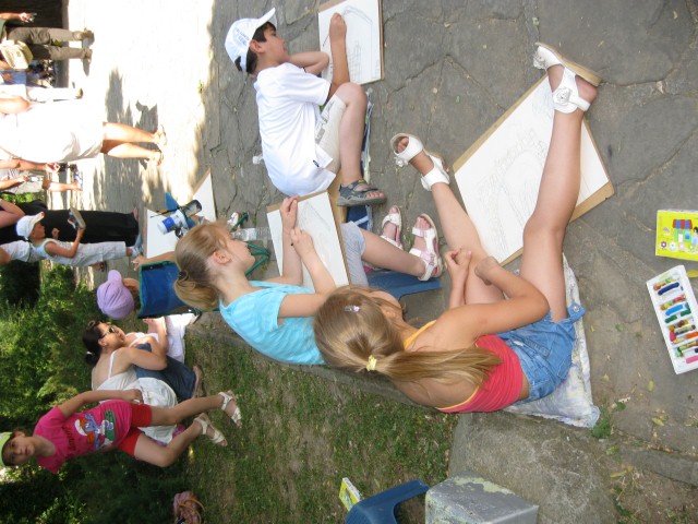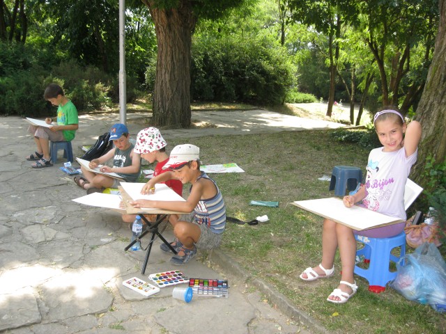 В момента най-малките възпитаници на школата завършват своята творческа година с пленер в парк "Тюлбето"и на "Тракийската гробница", където усмихнати туристи се възхищаваха на красивите рисунки.