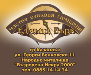 От септември в Казанлък ще заработи частна гимназия. През новата учебна година в града на розите свой филиал ще отвори Частната езикова гимназия „Едмънд Бърк“. Гимназията е със седалище Пловдив и е лицензирана в МОМН. За момента се планира в Казанлък да бъде наблегнато на обучението на ученици от 8 до 12 клас, като в началото ще се акцентира на обучението по английски език, което ще бъде водено от пловдивски преподавател. Първото частно училище в града на розите ще провежда заниманията си в сградата на НЧ „Възродена Искра“ на адрес : ул. „Георги Бенковски“ №11/северно от сградата на пощата/. Приемът в гимназията ще бъде по документи, като за справки може да се обадите на телефон : 0885 14 14 34.