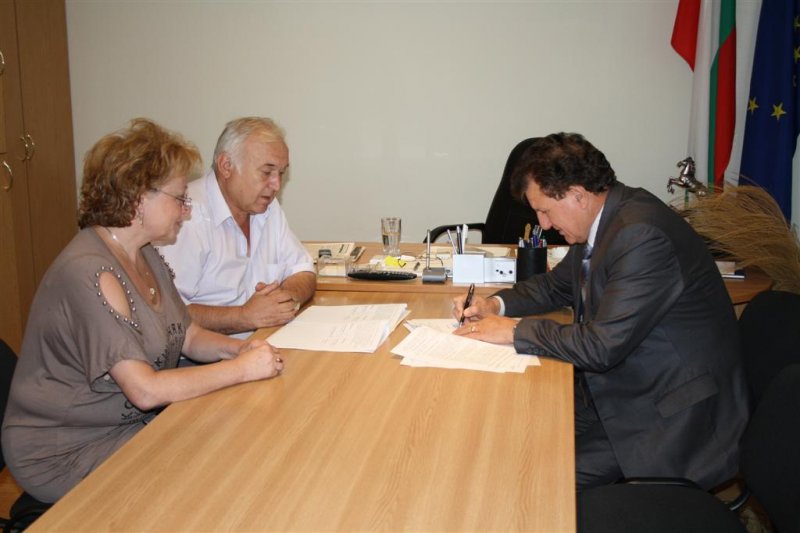 На подписването в кметството в Павел баня присъстваха председателят на Общински съвет Недка Кавръкова и зам. кметовете Йордана Енева и Милена Паунова.