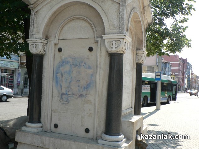 6 дни след публикацията на нашия потребител Мариан Георгиев в рубриката на Kazanlak.Com - РепорТИ и след днешно изрично сигнализиране на Общината от наш репортер, следобед източната страна на Лъвовата чешма бе почистена от надписа, който я "красеше" в последните седмици. Надписът със син спрей „Ж Н“ обграден със сърце днес бе премахнат от служители на Община Казанлък, които заявиха, че утре ще премахнат и остатъците от графита.
