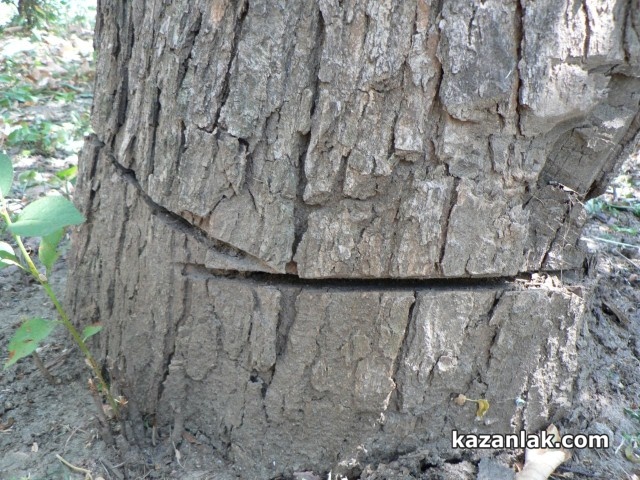 Новината потвърди старши експертът ОВОС Марияна Маркова. Проверка на място показа, че следите от трион са стари и разрезът не е правен през тази година. Интересно е, че подобни вандалски разрязвания са често срещано явление, случаите нашумяха в София, като за момента органите на реда не могат да открият извършителите на деянията в столицата. За сега това е единичен подобен случай в Казанлък.