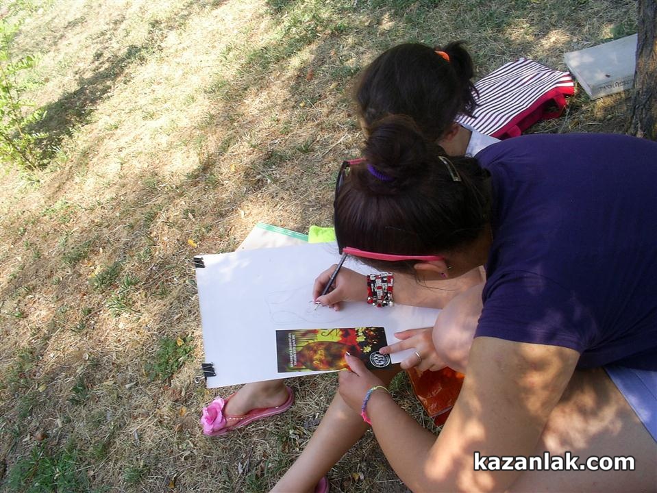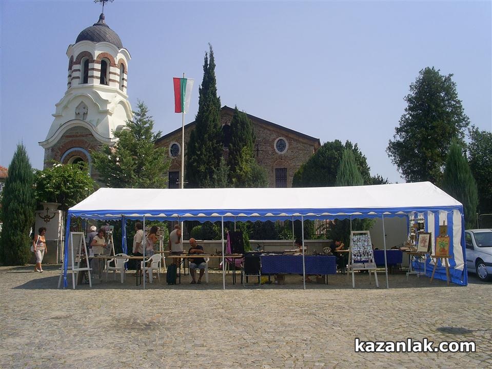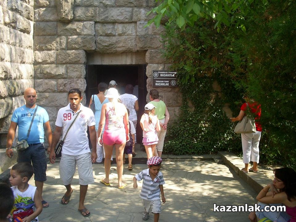 Оживено беше в парк „Тюлбето” около Тракийската гробница. Групи с руски туристи разглеждаха копието на гробницата по път за Шипка, за където бързаха – да гледат възстановките при честването на 135 години Шипченска епопея. Друга група деца рисуваше тракийски картини в пленер на Школата по изобразително изкуство на Ренина Лекова и бързаха да приключат за насрочената за тази вечер от 17:00 изложба от пленера на школата, която не е част от Тракийските празници. От трета страна булка и младоженец бързаха да направят сватбени снимки до гробницата и да се вместят за самостоятелна фото-сесия на красивия декор измежду рисуващите деца и снимащите се туристи. Парк „Тюлбето” бе обърнат на паркинг, след като освен сватбарите и други граждани бяха нахлули по алеите с колите си. Единственото свързано с Празниците на тракийската култура събитие на Тюлбето по същото време бе Изложбата на тракийско вино в „Българанъ”, на която присъстваха броени поканени гости. Сватба в „Зорница” и съботния плаж на басейна бяха по-мащабните поводи за нашествие на казанлъчани на Тюлбето. Междувременно самотни пред Куленската църква художници творяха на тракийска тема във включения в Програмата от „Докоснати от древността”: „Панаир на тракийските занаяти и изкуства”. Нито табела нито дори плакат или брошура във или около Тракийската гробница или входа на Тюлбето не показваше на случайните руски и неколцина български туристи, че в този момент в Казанлък се провеждат едноседмични Празници в Долината на тракийските царе или поне, че 20 метра по-надолу могат да разгледат Панаир на тракйиските занаяти и изкуства.