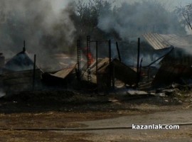 Около 10:00 вчера сред отломките от пожара възникнал предишния ден по обед в Казанлък е открит обгорения труп на 68-годишният Р.Д. Пожарът лумнал от казан за ракия в стопанските постройки в бившето ТКЗС – Казанлък в кв. „Изгрев”. Още по време на пожара свидетели потвърдиха, че вътре е бил собственика – Р.Д, както съобщи Kazanlak.Com. Останките на 68-годишния казанлъчанин са намерени вчера и трупът е откаран за аутопсия в Катедра „Съдебна медицина” - Стара Загора. Причините за пожара, както и стойността на нанесените щети са в процес на изясняване от служители на Районно управление „Полиция” - Казанлък. Полицията потвърди и за открития при този пожар снаряд.
