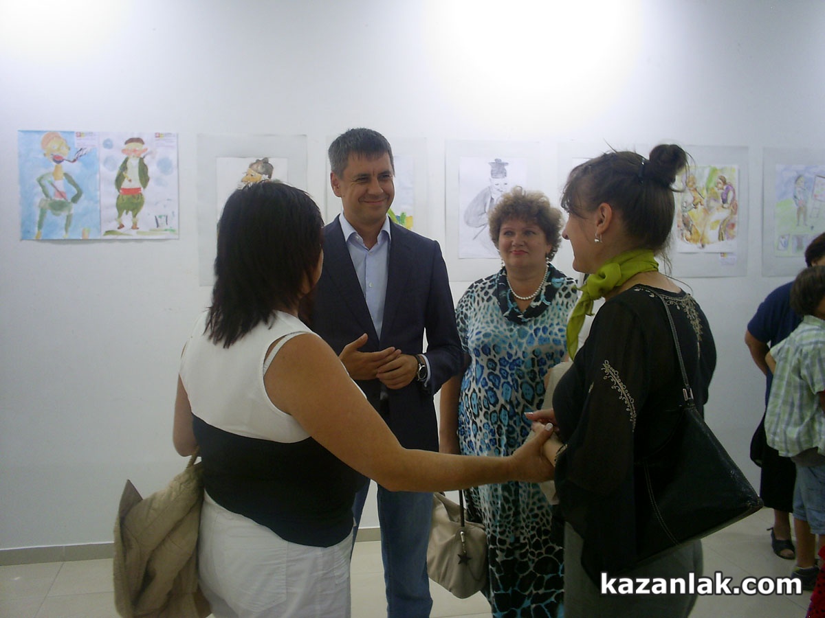 Вечерта гостите бяха поканени на откриването на 2 изложби от Тракийските празници. Кметът Андреев обърна специално внимание на малката актриса от енинското читалище, с която разговаря над 10 минути. Още толкова отдели за разговори на артистична тема с ръководителката на изложбата Ваня Запрянова, с която обсъди възможността за гостуване на талантливи деца в Казанлък и Толияти на разменни начала.