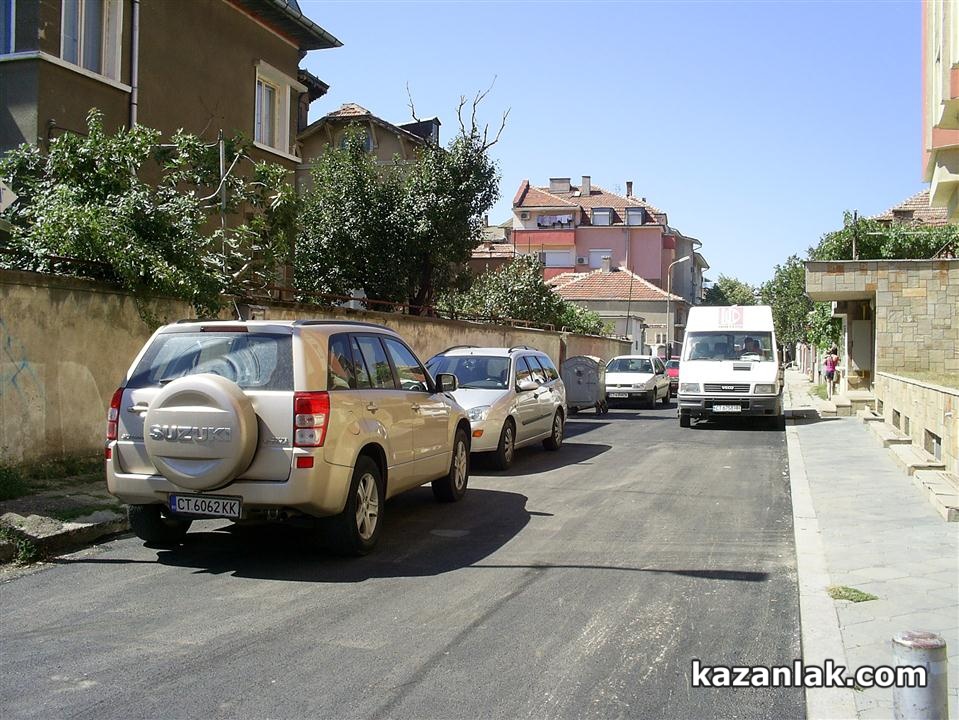 Миризмата на асфалт по улица Иван Вазов предизвика радостни усмивки сред стотиците казанлъчани, ползващи едно от най-популярните паркинг -места в града. Което засега продължава да е безплатно и тук-там незаконно, до пускането в действие на Синята зона и монтирането там на паркомати. След вчерашното затваряне заради валяците, днес животът, паркирането и задръстването по Иван Вазов кипна отново с пълна сила.