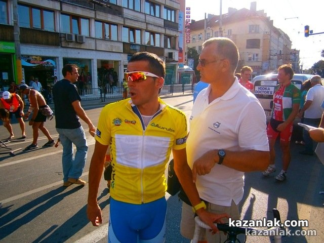 На снимката:Мартин Грашев с жълтата фланелка след етапа в Казанлък