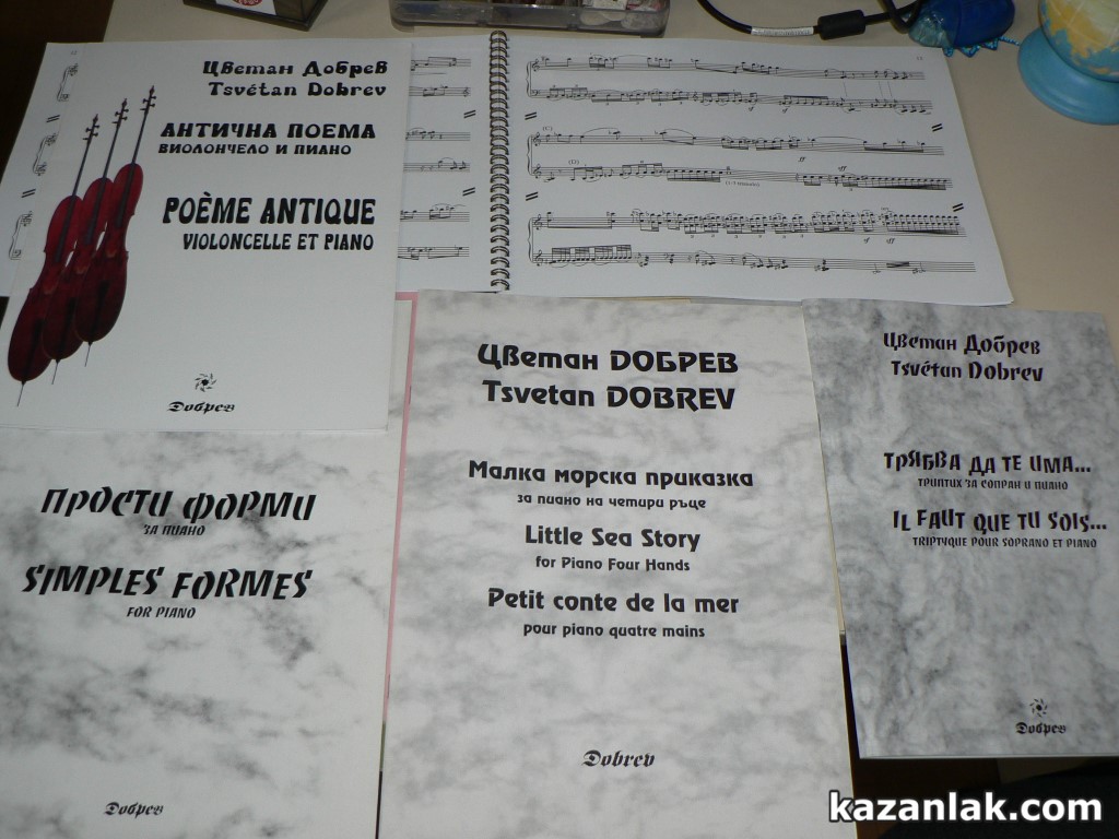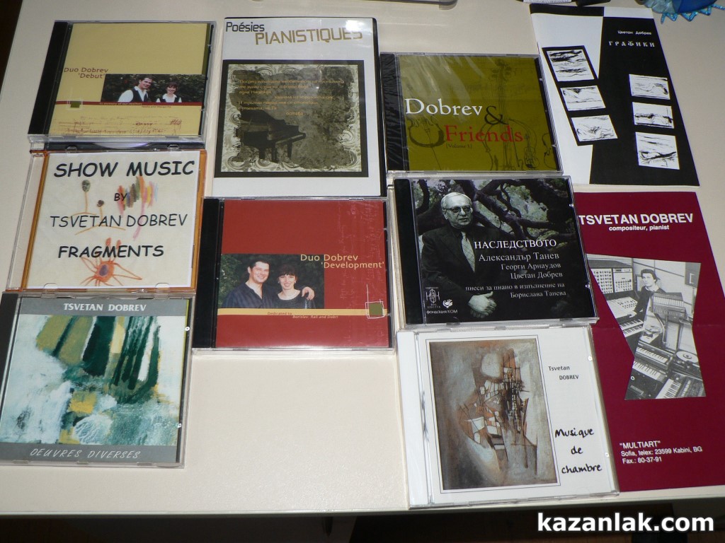 Казанлъчанинът дари на библиотеката компакт дискове със свои произведения, както и негови книги и партитури. Едно от даренията е много интересно, като това са 3 негови книги с методология за преподаване на музика, издадени от един от най-престижните университети в света – Сорбоната. Засега университетското издание е само на френски, но предстои в най-скоро време да бъде преведено и на български. Освен успехите на Добрев в музикалните среди, той има издадени стихосбирки, които също вече са във фонда на ОБ „Искра”.