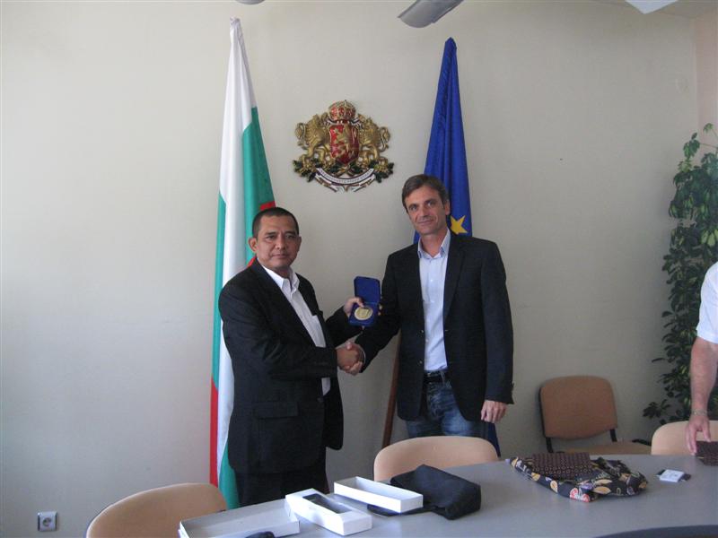 Губернаторът на регентство Уонособо, Индонезия, г-н Кхолик Ариф, посети днес община Казанлък. Той се срещна с председателя на Общинския съвет Николай Златанов, със заместник-кметовете Даниела Коева и Петър Косев, заместник-председателя на ОбС Нено Влайков и главния архитект Ивелин Недялков. В индонезийската делегация участваха още бившият посланик на Индонезия у нас Робърт Инкириванг, представителят на посолството Праново Правирокусумо и бизнесмени от далечната страна.