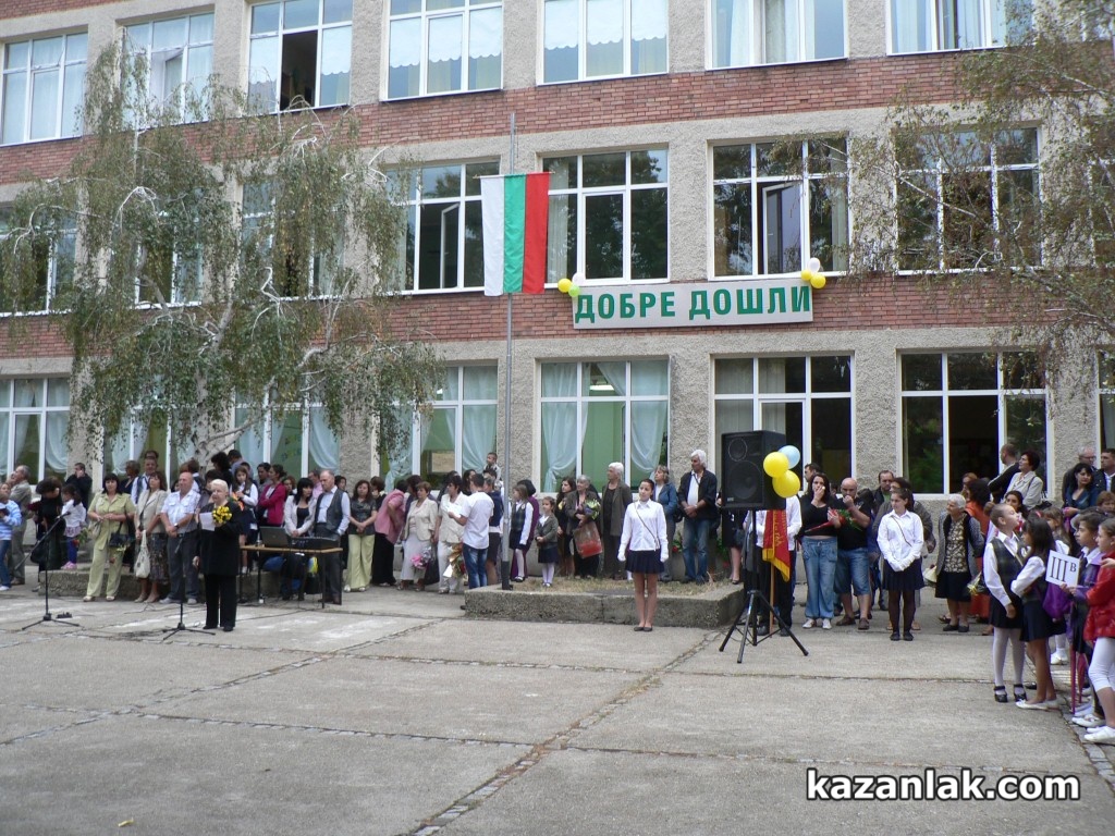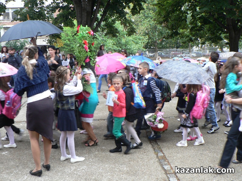 Днес в цялата страна започна новата учебна година. Общо 7450 ученици в Община Казанлък влязоха в класните си стаи. Първокласниците в региона са 691, като в СОУ „Екзарх Антим I” прага на училището за първи път преминаха 103 деца, разделени в 5 паралелки. Програмата в училището включваше издигане на знамето на България, водосвет и кратка художествена програма с песни и стихотворения. Събитието в училището бе уважено от секретаря на Община Казанлък Ваня Иванова, която връчи на директора Радиана Стефанова поздравителен адрес от името на Кмета Галина Стоянова. Дъждът в края на церемонията по откриване на новата учебна година не уплаши присъстващите, а сякаш времето пожела на учениците да им върви по вода.