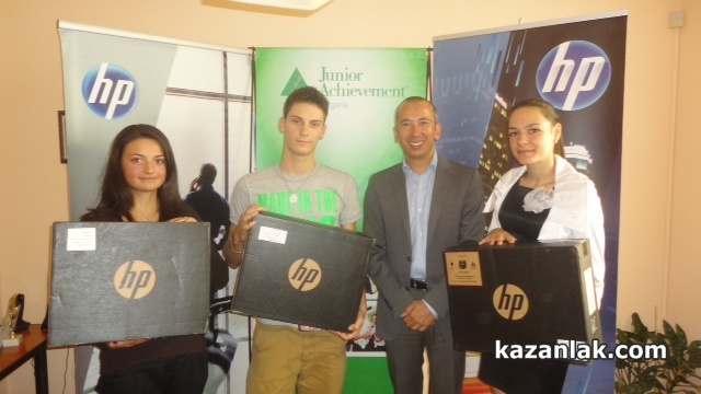 Победителите получиха преносими компютри от г-н Ираван Хира, Генерален директор на Хюлет-Пакард България, който ги поздрави за успеха и ги покани да прекарат един ден в офиса на компанията и да се запознаят с работата и служителите й.