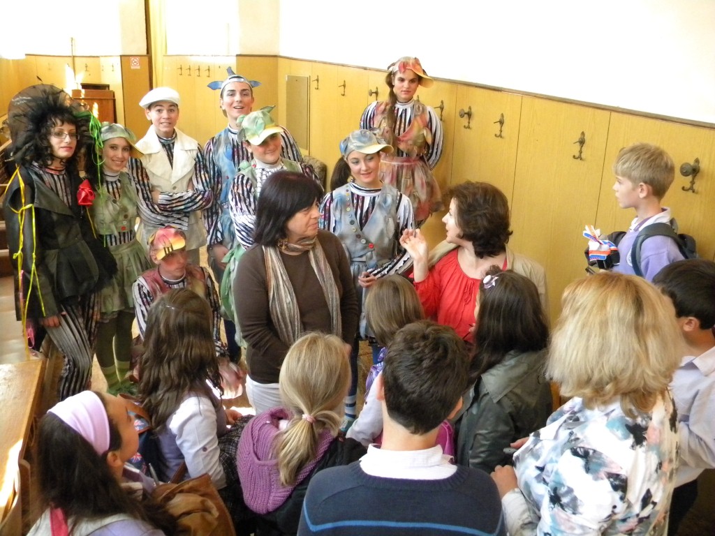 С много аплодисменти и комплименти за играта на младите актьори, последва финалът на спектакъла „Ние, врабчетата” на Читалище „Искра” в град Айтос. Младежката театрална студия, с художествен ръководител Мая Стоянова, изигра две представления вчера пред ученическа публика. Айтоските възпитаници на училищата „Христо Ботев” и „Никола Вапцаров” посвещават свободното си време в театрални формации „Браво” и „Златно ключе”, споделиха учителите пред Мая Стоянова. Между двете представления те се срещнаха с младите актьори от Казанлък. Поздравления за режисьорските решения поднесоха на Стоянова, Нивелина Василева и Румяна Йорданова, ръководителки на формациите. Заедно със своите възпитаници те докоснаха новите си любимци от Казанлък, поговориха с тях, снимаха се за спомен и изразиха възхитата си от сценичната им изява.