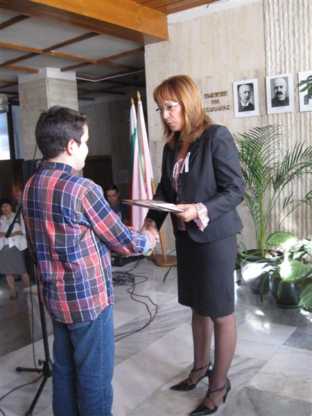 Със Заповед № 1842/11.10.2012 г. на кмета на община Казанлък бяха обявени децата, които ще получават едногодишна стипендия в размер на 130 лв. месечно по Общинската програма за закрила на детето. Това са Виктория Налбантова от СОУ „Екзарх Антим І”, Антонио Михайлов от ОУ „Мати България”, Александра Симеонова от СОУ „Екзарх Антим І”, Кристиан Боюклиев от ПМГ „Никола Обрешков” и Виктор Владков от СОУ „Екзарх Антим І”. Децата бяха лично поздравени от кмета Галина Стоянова и получиха първата стипендия от Общината.