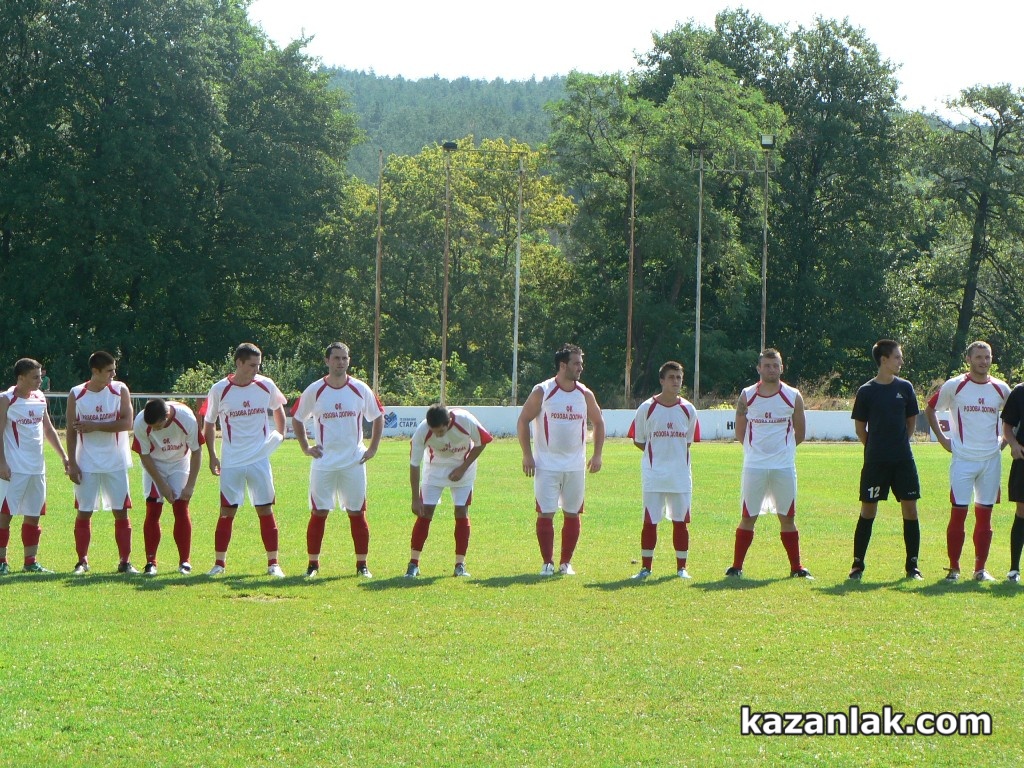Без двама наказани футболисти „Розова долина“ ще гостува днес в Карлово на местния „Левски“. За казанлъчани няма да играят наказаният за два мача Венелин Братанов, както и Пламен Стоянов, който е наказан за натрупани 5 жълти картона. За Карлово „Розите“ заминават със самочувствието на отбор постигнал 3 поредни победи и ще се опитат да продължат серията. В класирането след изиграването на 9 кръга от „В“ Югоизточна група състава ни воден от Даниел Христов е на 8-мо място с актив от 16 точки, колкото има и шестият „Мастер“. Лидер е съставът на „Ботев“ /Гълъбово/ с 21 точки. Противниците на казанлъчани в днешния мач са едва 16-ти, като до момента имат актив от едва 4 точки. Карловци в 9 срещи записаха 5 загуби и 4 равни срещи, като все още нямат победа. Преди този кръг в състава им бе извършена треньорска рокада на поста старши треньор преди мача с „Розова долина“ бе назначен Красимир Манолов, който изведе състава на „Раковски“ до професионалния футбол. Манолов бе назначен и за селекционер на националния аматьорски състав на България. Срещата днес е с начален час 16:00.