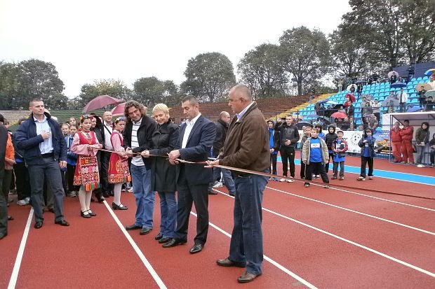 Лентата на съоръжението разполагащо с 25 хиляди седящи места прерязаха Нунева, Марков Борисов и Нейков, като се очаква на лекоатлетическата писта да и върви по вода, след като дъжд се изсипа над Русе по време на откриването.