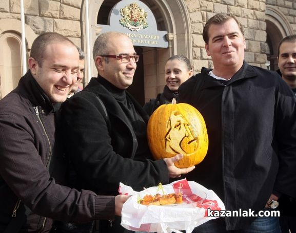 Младите социалисти влязоха в полезрението на националните медии вчера на Хелоуин, когато се опитаха да подарят на Бойко Борисов тиква, издълбана с лицето на премиера."Произведението символизира политиката на ГЕРБ – една куха тиква с лика на Бойко Борисов", заяви пред Министерски съвет лидерът на МО в БСП Явор Гечев (на снимката долу).