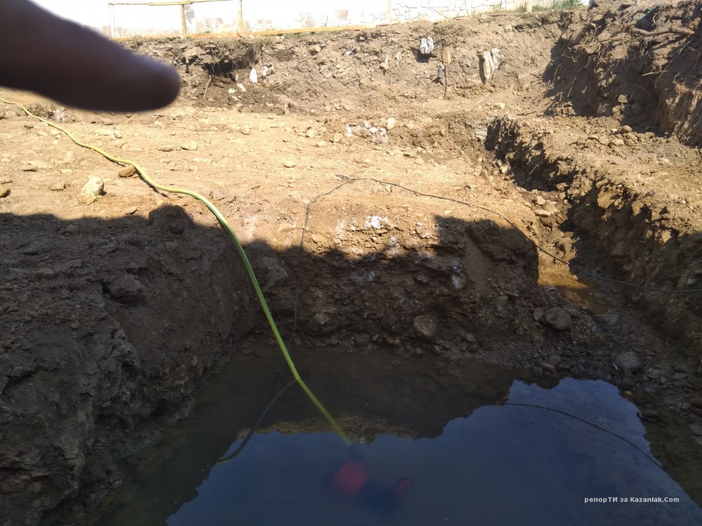 Трети ден след подаден сигнал към ВиК за да не се наводни съседната къща с помпа извеждаме водата от изкопани основи за строеж.