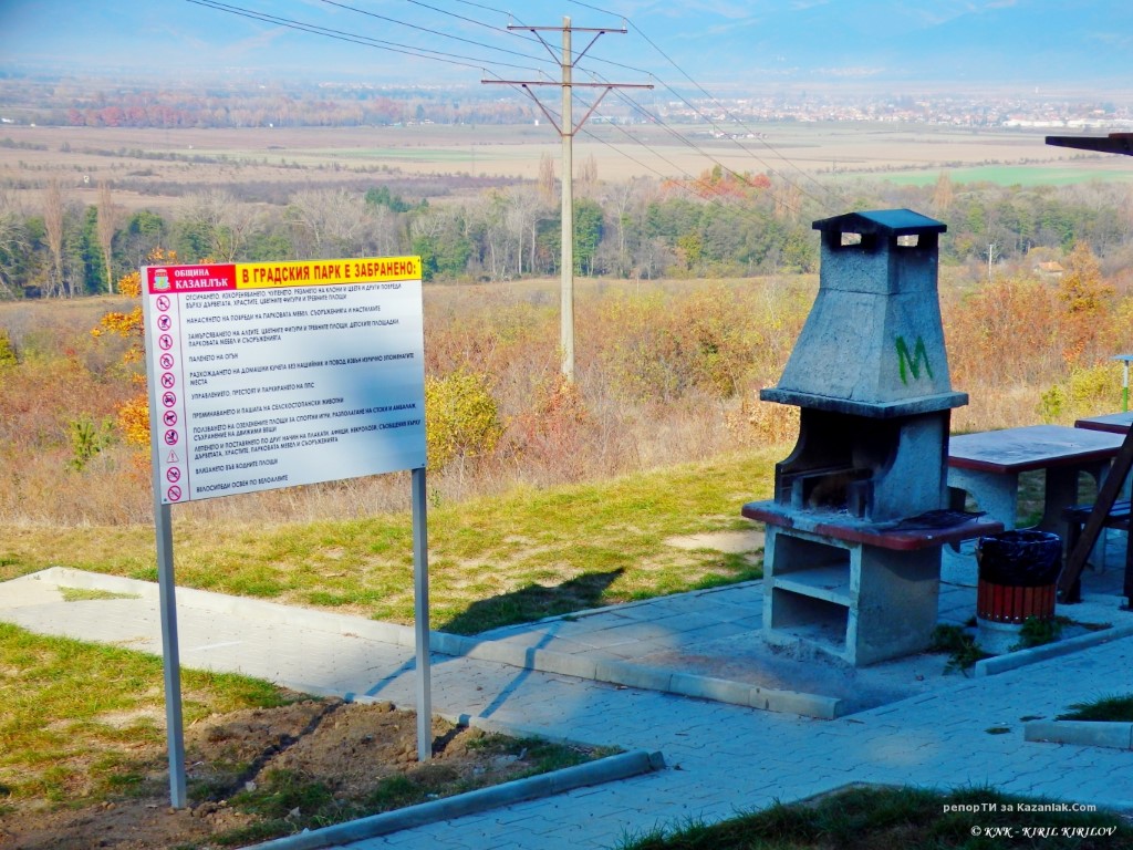 ... Та, на табелката, намираща се до специално направено от общинските служители място за барбекю, пише, че паленето на огън е забранено!? Без никакво уточнение, точно така пише: ”Паленето на огън”, като в ”заглавието” на табелките, с червени букви (!), е написано, че ”В градския парк е забранено:”...