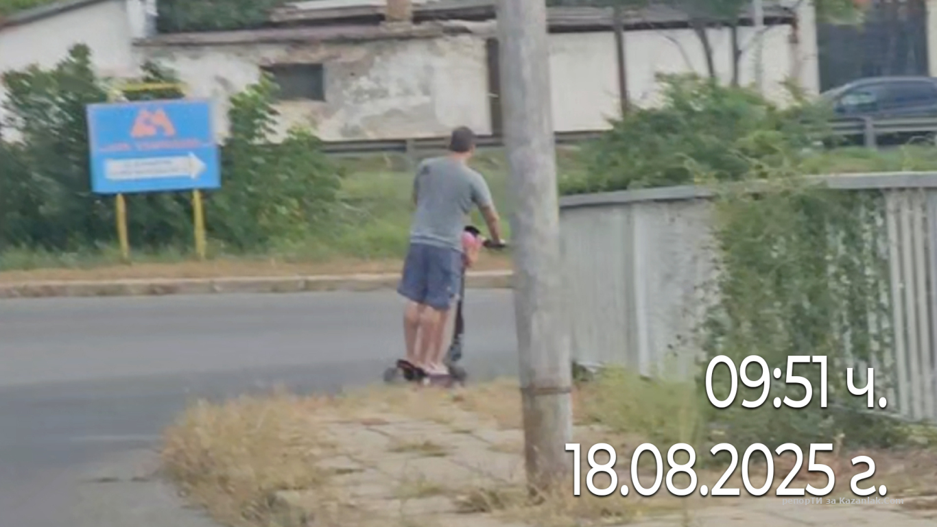 Възрастен вози дете на ел. тротинетка без да му пука от последствията / РепорТИ за Казанлък