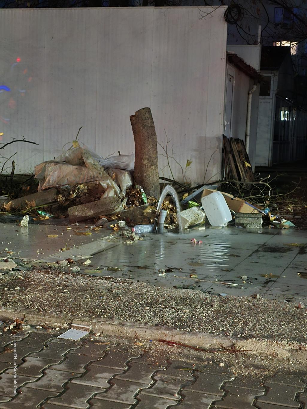 Бликащ фонтан след демонтаж на барака за ”бързи закуски” на ”Абаята”, зад спирката посока запад. Моля, на вниманието на съответните органи за този разлив на питейна вода!