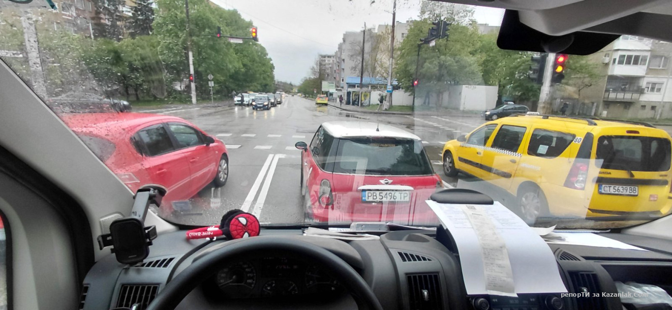 Шофьор навлезе в насрещното движение на кръстовището в западната част на Казанлък, на Абаята, и "културно" си изчака светофарът да даде зелен сигнал за движение.