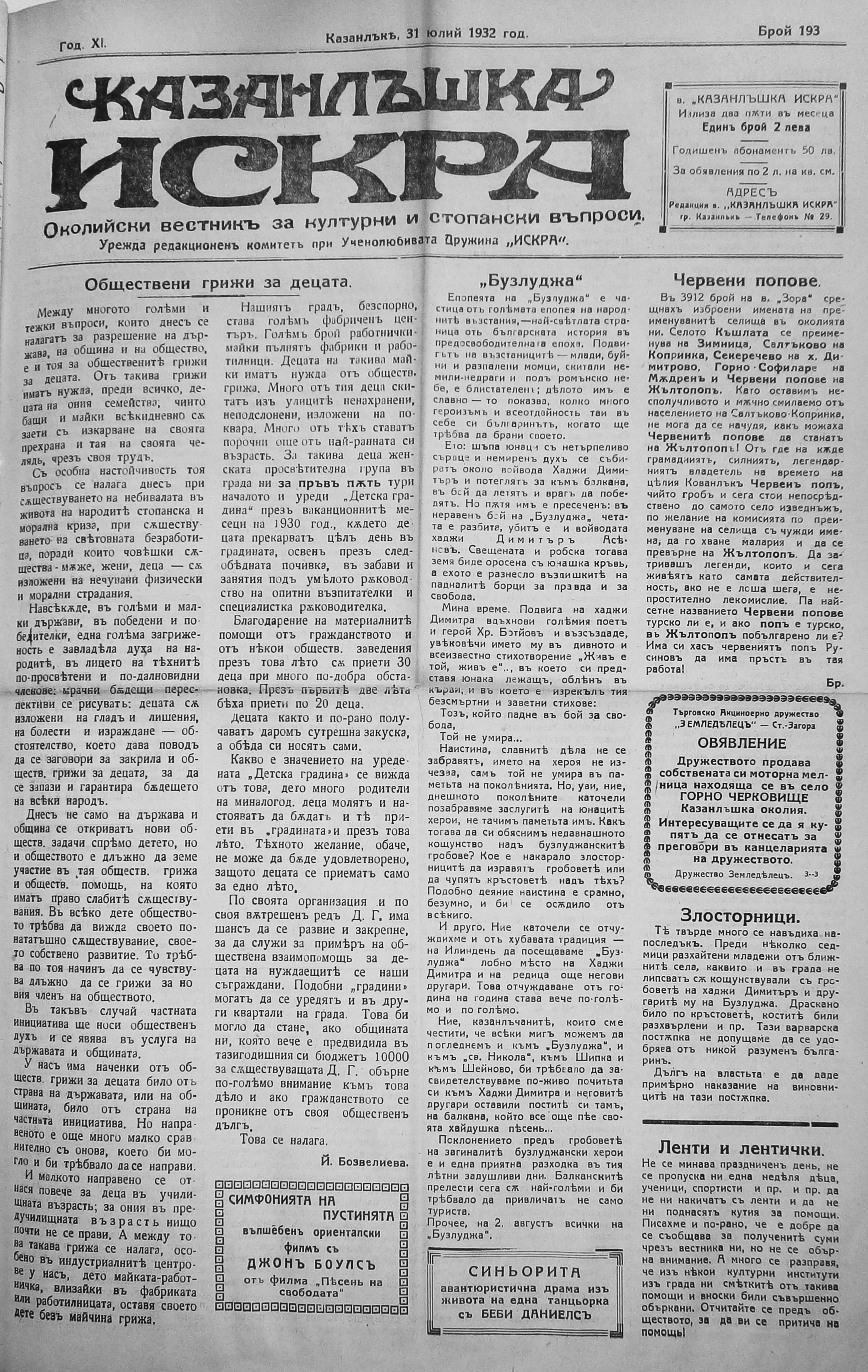 Този проект е реализиран от Kazanlak.Com с финансовата подкрепа на Борис Кърчев и със съдействието на Общинска библиотека "Искра"