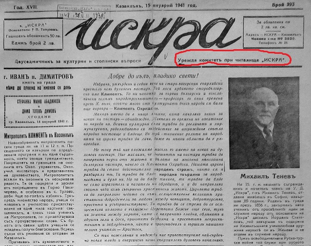 Не е ясно, кой „запознат“ с историята на вестниците в Казанлък и България е решил да сложи точно този надпис над вестник „Искра“.