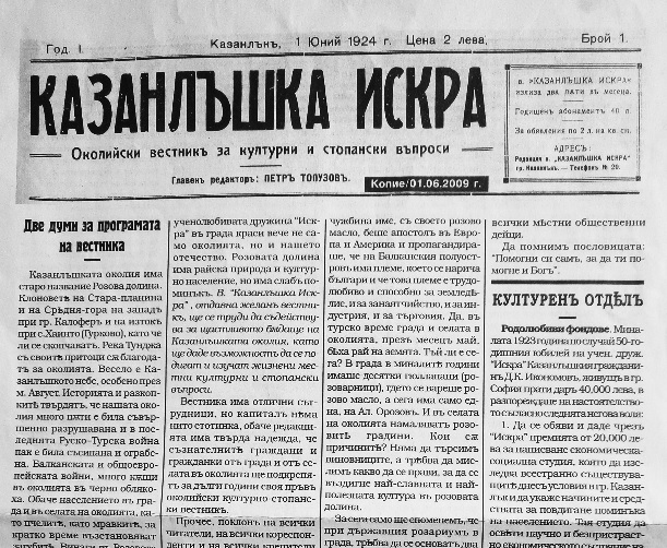 За тези, които истински се интересуват от вестниците и историята е ясно - вестник „Искра“ не е най-старият общински вестник нито в България, нито дори в Казанлък .