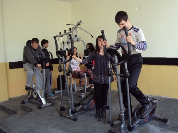 Гимназията разполага с фитнес зала – оборудвана с модерни уреди.
