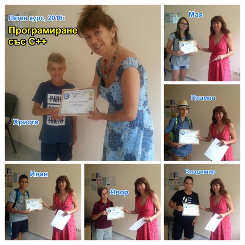 През провелите се летни обучения в ИКТ Център присъстваха с голямо желание в курс „CorelDraw X7 за деца“: Ростислава, Ралица, Криси, Пламена и Донна; „Програмиране със Scratch“: Мирослава, Теодор, Калоян, Христо, Виктор и Деян; „Програмиране със C++”: Мая, Явор, Христо, Пламен, Владимир и Иван. Някои от тях изявиха желание да запишат още един курс в ЦПО „ИКТ Център“, други в Детската академия за учебната 2016-2017 година. Всички те вече са достатъчно мотивирани и предизвикани да се развиват, да трупат нови знания, да не се предават лесно, да са полезни на себе си и обществото и със сигурност няма да се влеят в плашещата огромна маса на апатични, обезверени и асоциални млади хора. Ако ние от ИКТ Център сме допринесли и с един процент за това, ще сме много удовлетворени. Разбира се за развитие на тези деца най-голяма е заслугата на родителите и учителите им. Към тези деца искам да добавя и палавниците от Лятната ни занималня: Цвета, Ивана, Петя, Габи, Александра, Радуил, Християн, Никола, Андриан, Стоян, Йоан, Крис, Кристиян и др., които къде на игра, къде на шега бяха провокирани да използват умните си главички и също много важно – да се разбират, да отстъпват пред другия, да се извиняват, да уважават правилата и да ги създават и спазват и да се забавляват заедно.