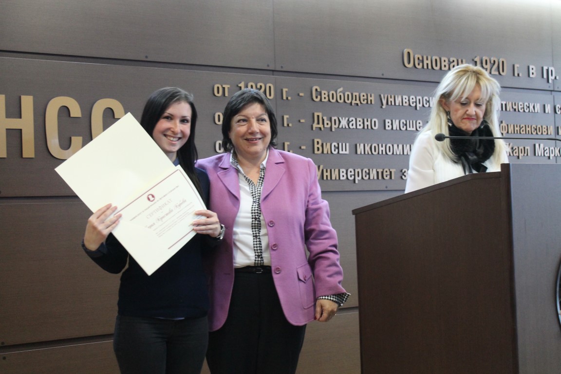 Връчването на сертификатите на победителите в Националното състезание по финанси и счетоводство под патронажа на Ректора на УНСС проф. д.ик.н. Стати Статев се състоя на 15 декември 2016 г. от 14 ч. в зала "Тържествена" на УНСС.