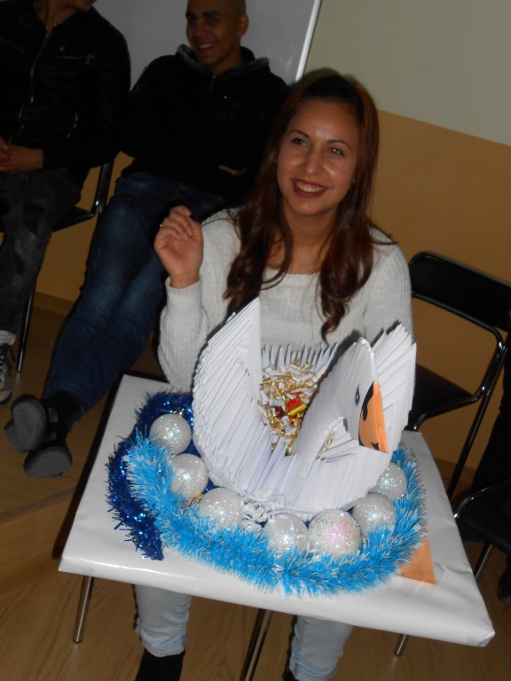 Викторина с въпроси от областта на биологията, математиката , литературата и фолклора и философията постави началото на празника . Прожектирани бяха два филма от студио „Изящество и красота“: „Коледно вълшебство “ и „Усмивки в дъжда“. В Коледна работилница учениците изработиха оригами за късмет и благополучие – един голям, красив лебед.