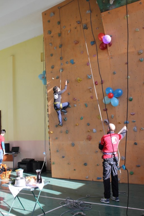 В събота /17.12.2016г./ алпинисти и приятели се събраха на освещаване и официално откриване на поредната изградена от клуба катерачна стена, която е предвидена да предостави подходящи условия за подготовка както на състезатели за високи спортни постижения, така и за спорт за здраве! Официални гости на тържеството бяха г-жа Мариана Демирева, директор на Професионална гимназия ”Иван Хаджиенов” и основателката и почетен председател на Алпийския клуб – г-жа Дафина Гъдева. Именно на тях се падна и честта да прережат лентата и официално да открия т стената.
